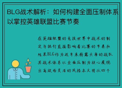 在《英雄联盟》的职业赛场上,战术的运用直接影响着比赛的胜负。RNG战队以其独特的包夹体系而闻名,这种战术不仅能够有效地控制比赛节奏,还能为团队创造更多的胜利机会。本文将对RNG战术进行详细分析,从包夹体系的构建、实施策略、选手配合以及应对敌方反击四个方面深入探讨,旨在揭示如何通过精妙的战术安排来掌控比赛局势。通过这些分析,我们可以更好地理解RNG战队在赛场上的成功秘诀,以及这一战术在实际比赛中的应...
