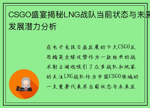 本文旨在深入分析全球挑战赛中LNG团队的心理素质,探讨其关键表现与影响因素。首先,我们将概述LNG团队在比赛中的心理素质表现,包括压力管理、团队协作和情绪控制等方面。接着,文章将从个体因素、团队氛围、外部环境及经验积累四个方面详细阐述影响LNG团队心理素质的主要因素。在每个方面中,我们将提供丰富的案例与理论支持,以帮助读者更好地理解这些因素如何相互作用并影响整体表现。最后,结合对LNG团队心理素质...