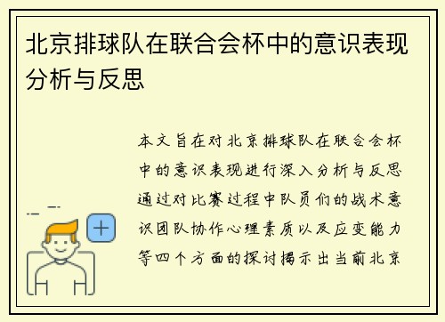 本文将对北京网球队的区域防守战术进行深入剖析,并探讨在网球竞技中如何运用战略思维来提升整体表现。首先,将分析区域防守的基本概念及其重要性,然后讨论北京网球队在具体比赛中的应用案例,接着探讨防守战术与心理素质之间的关系,最后阐述如何通过科学训练来优化和提升区域防守能力。这些内容不仅为读者提供了丰富的理论知识,也为实际操作提供了有益的参考,助力提高竞技水平。 1、区域防守基本概念 区域防守是指在比赛...